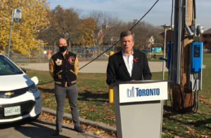“Toronto is a leader in adopting emerging, sustainable and environmentally sensible technologies, and the EV charging station pilot is yet another example of this,” says Mayor John Tory, in officially launching the service Saturday in the city’s east end. “While we continue to navigate the unprecedented times of a global pandemic, we must also remain diligent in our commitment to finding ways to reduce greenhouse gas emissions.”