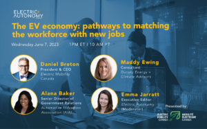 This panel discussion will focus on the new opportunities for jobs that are being created by the EV transition and the skills, training and workforce development that will be required to support it.